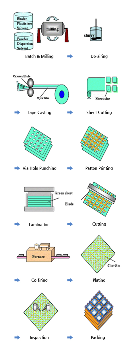 원하는 전기적, 기계적 특성을 갖는 세라믹 패키지로 만들기 위해 열처리 하는 공정