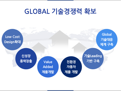 고객에게 초 인류 기술을 제공하기 위하여 2015년 연구소를 통합하 여 기술개발 프로세스를 통일하고 제품 해석,시험 시스템을 공유함 으로써 고객이 요구하는 제품을 위한 technology 및 Application 확보에 힘쓰고 있습니다.