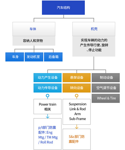 客户所要求的车辆的稳定性、舒适感、安静感等 作为车辆的感性质量的重要配件,防震橡胶产品的重要性 正持续增大