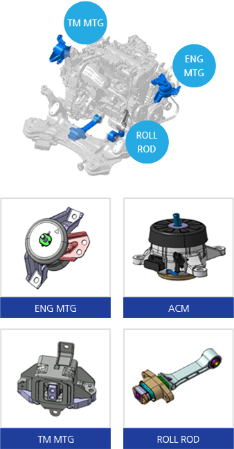 Torque产生原因主要有Engine爆发及旋转所产生振动、过度的Engine Movement控制(紧急发车、紧急沙策、Pot Hol、Road input等)、车辆行驶时Engine的Torgue变化所产生的振动。 最近通过支架个数4个中的3个来保证车辆功能的技术已被开发并正在使用中。