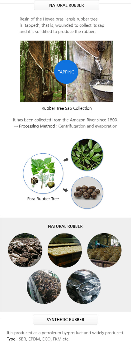 | SYNTHETIC RUBBER | - It is produced as a petroleum by-product and widely produced. - Type: SBR, EPDM, ECO, FKM etc. |
